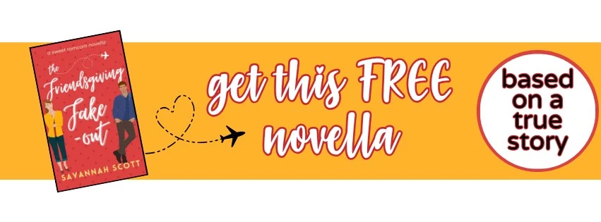 The Friendsgiving Fake-Out, a sweet fake-dating, long-distance romcom novella based on a true story: Get yours HERE.