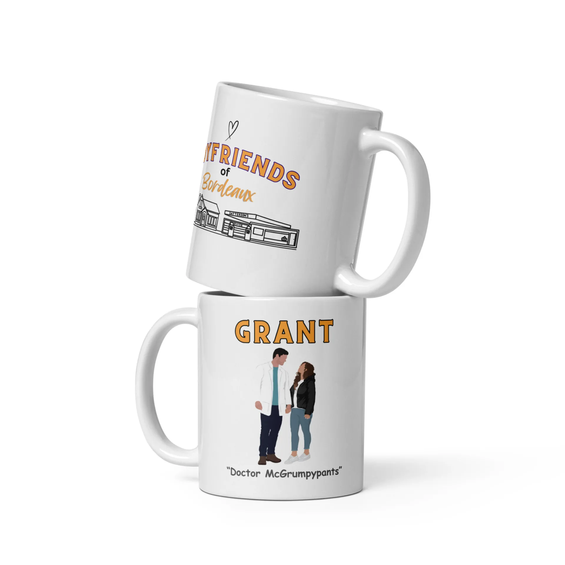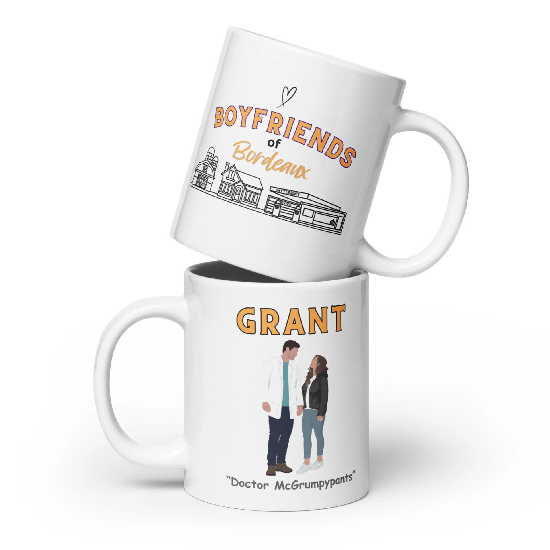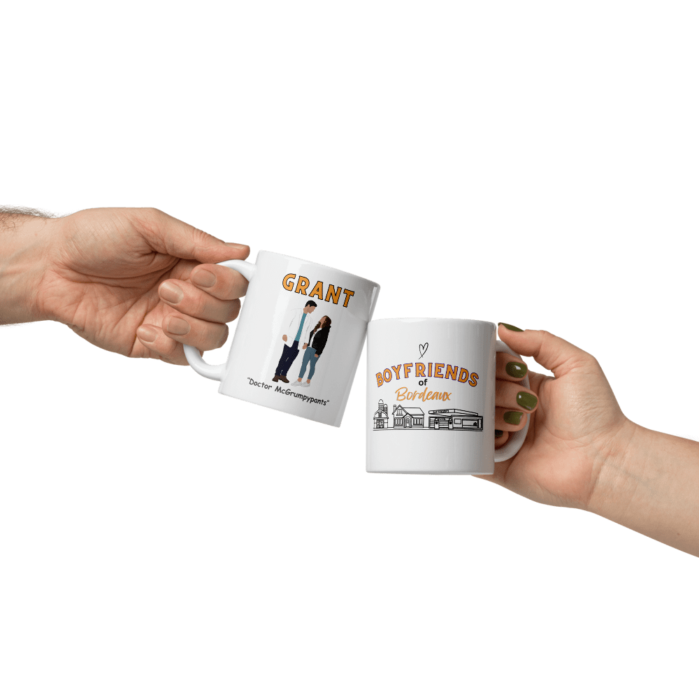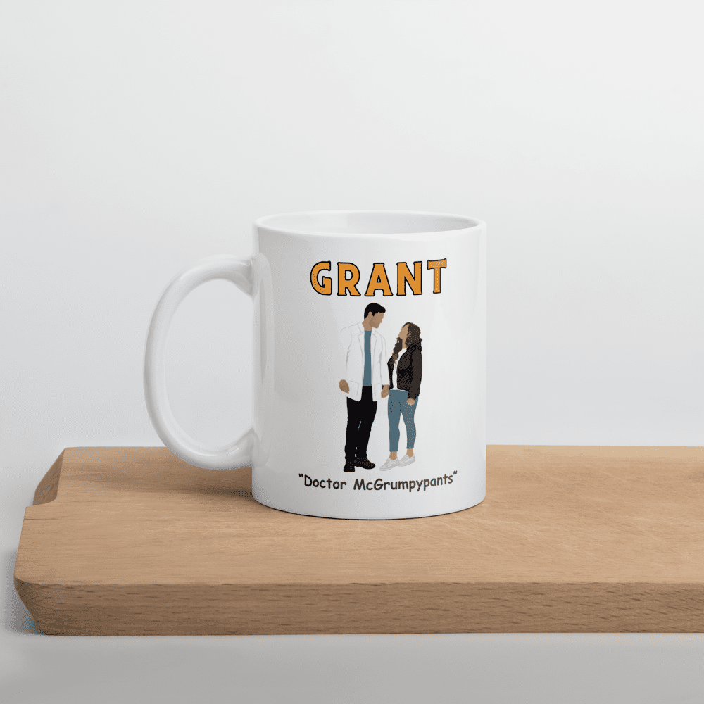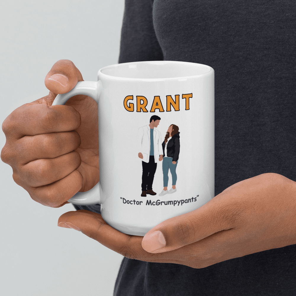 Commemorate the hot doctor with a cinnamon roll center and the spunky indie author who tames his heart with this mug.